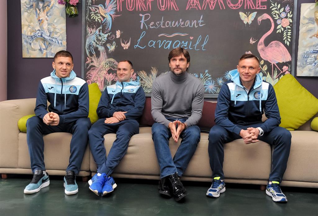Встречу новоиспеченных "олимпийцев" с журналистами клуб умышленно организовал так, чтобы общение происходило в неофициальной, по словам спортивного директора Олимпика Алексея Антонова, семейной обстановке. Поэтому для нее был выбран не пресс-центр или конференц-зал, а уютный ресторан Purpur Amore (Голосеевский проспект, 114). Осуществить задуманное удалось, поэтому привычный формат пресс-конференции быстро сменился беседой "по душам".