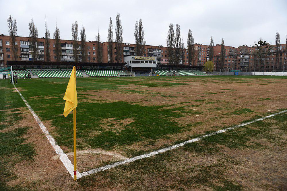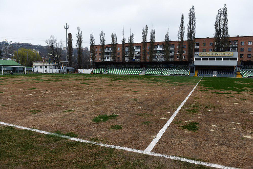 Газон стадиона, на котором Полтава должна была принимать Горняков находится в очень плохом состоянии.