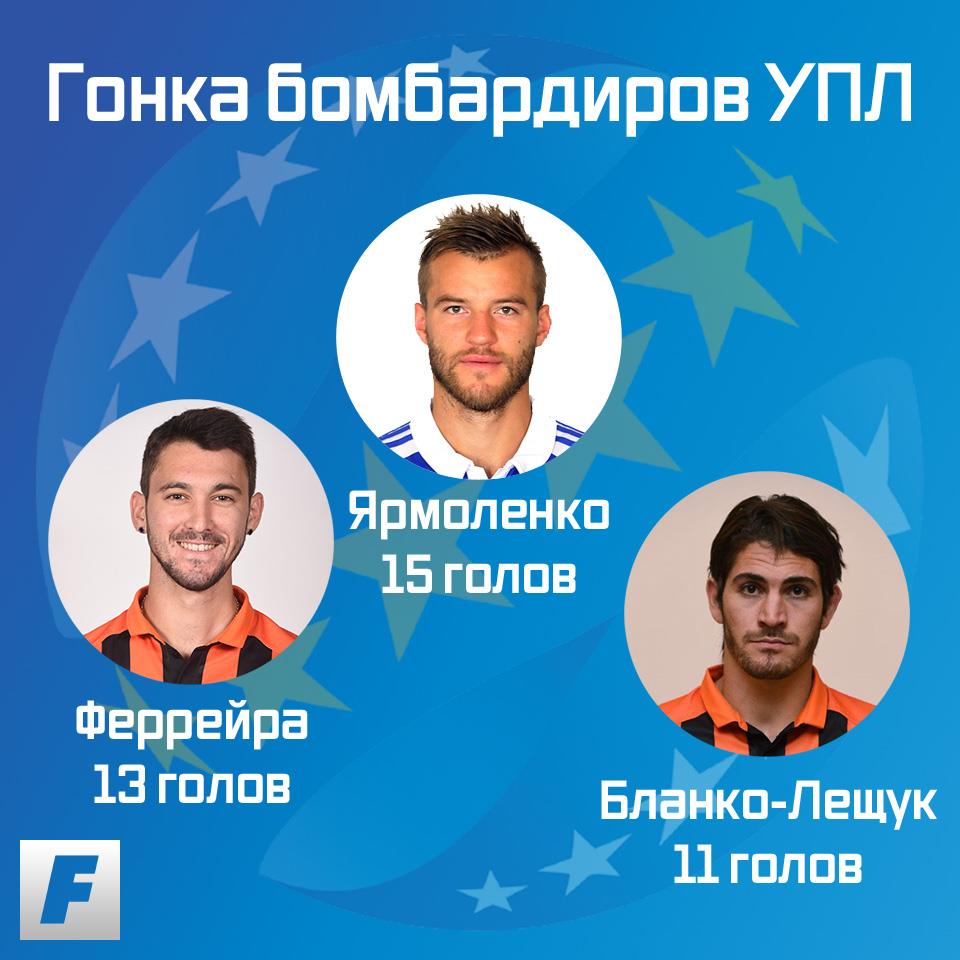 Таким образом, Ярмоленко стал лучшим бомбардиром УПЛ сезона 2016/17 — 15 голов в 28 матчах. Второе место у Феррейры (13 мячей в 20 поединках), третьим стал Бланко-Лещук (11 мячей в 29 поединках), а четвертым, проведший вторую половину сезона в Китае Жуниор Мораес (10 голов в 16 поединках).