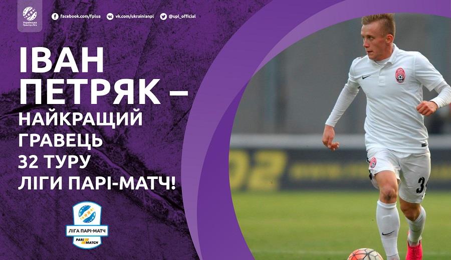 Полузащитник Зари Иван Петряк был назван лучшим футболистом завершающего тура чемпионата Украины.