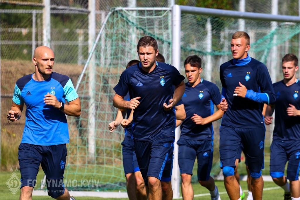 На первой тренировке Динамо под руководством Александра Хацкевича присутствовало 18 футболистов — четыре вратаря и 14 полевых игроков.