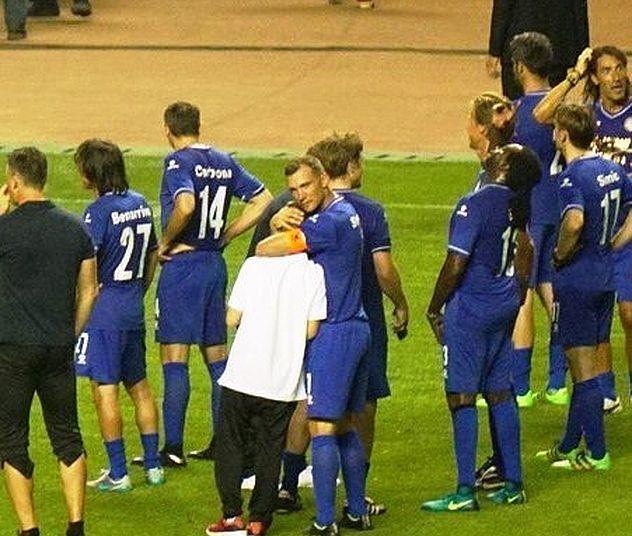 Главный тренер сборной Украины Андрей Шевченко принял участие в выставочном матче.