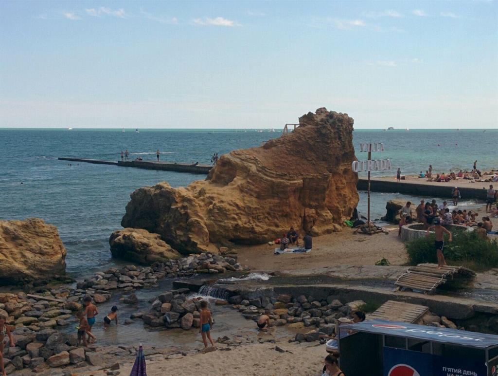 Вопреки ожиданиям, ближе к морю болельщиков тоже не видать. Так, на пляже "Отрада" собралась группка человек из 15, некоторые из которых повылезали на камень с названием пляжа и орали "Одесса-мама, Киев-папа", а остальные устроили между собой небольшие спарринги на пляже.