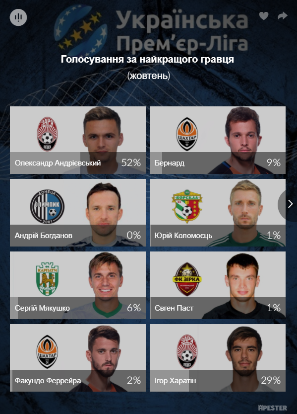 Лучший игрок чемпионата Украины по итогам месяца определялся зрительским голосованием. В голосовании принимали участие победители номинации "Лучший игрок тура" в октябре, а также футболисты, выбранные экспертами ФФУ: