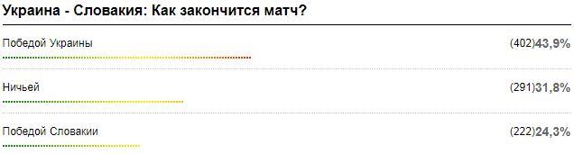 Большинство (43,9%) голосовавших, считают что победу одержит наша сборная. 31,8% пользователей думают, что матч завершится ничьей, а 24,3% не верят в нашу сборную.