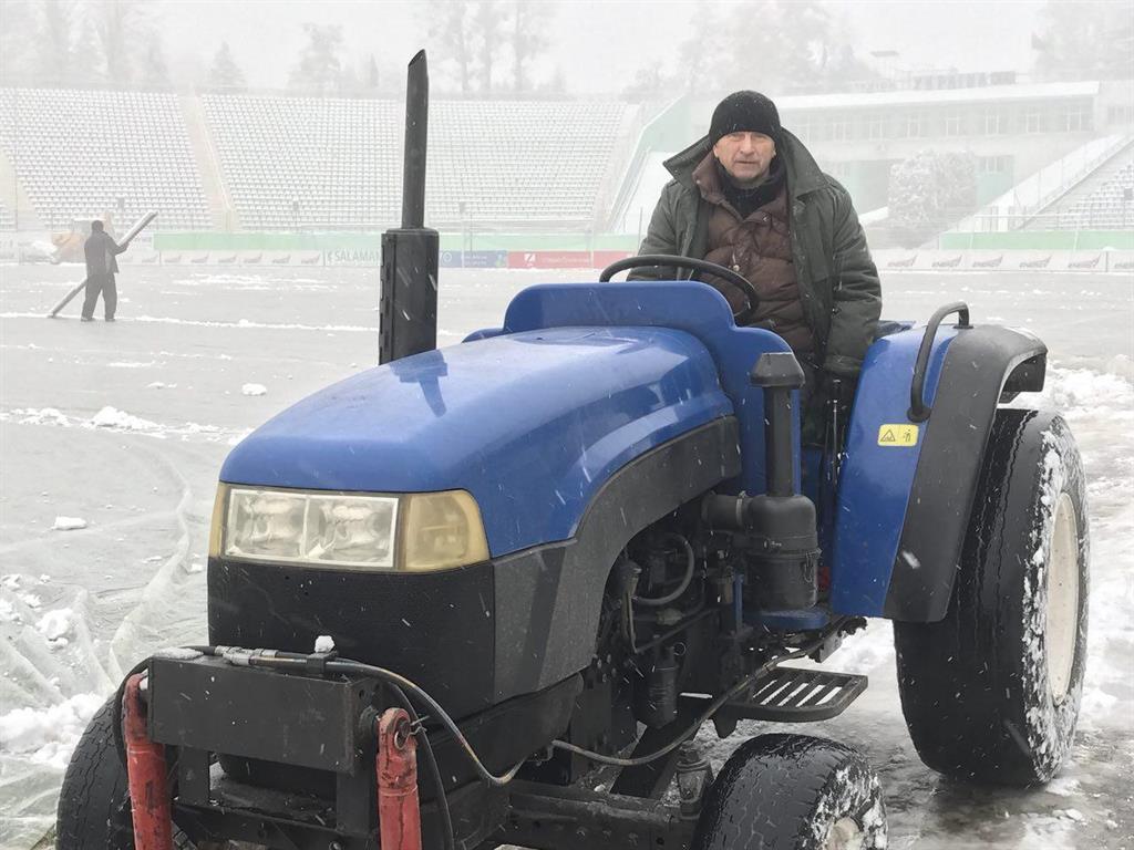 Во Львове выпал снег, а потому подготовка газона стадиона к матчу проходила немного не по обычному сценарию.