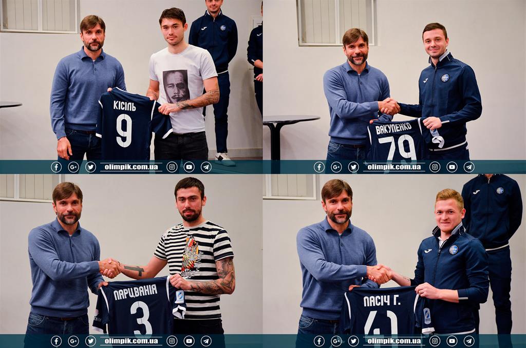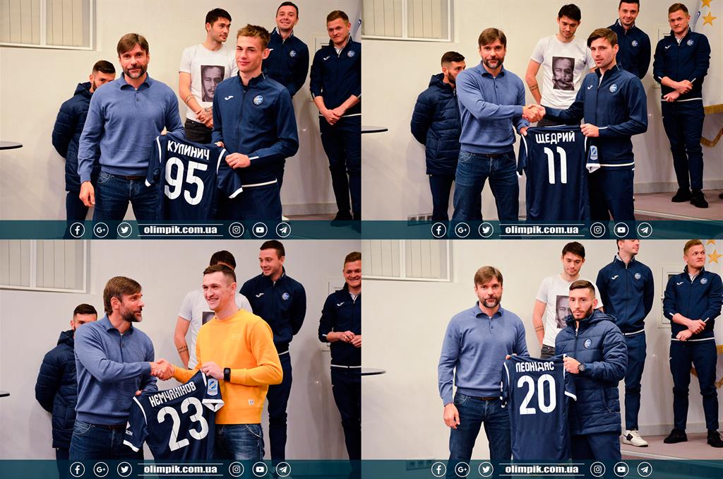 Футболки Олимпика со своими фамилиями и номерами получили Сергей Вакуленко, Сергей Кулинич, Руслан Кисиль, Геннадий Пасич, Леонидас, Артем Щедрый и Парцвания с Немчанинов (все накануне сыграли в матче УПЛ против Динамо). Не посетил мероприятие Евгений Пасич, получивший повреждение в матче с Динамо.