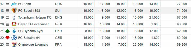Теперь у Динамо ровно столько же очков (62,000 балла), сколько и у гельзенкирхенского Шальке, но киевляне обошли немецкий коллектив по дополнительным показателям.