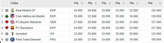 В первой 20-ке также случились изменения. Мадридский Атлетико опередил Баварию и Барселону, и поднялся на вторую строчку рейтинга.