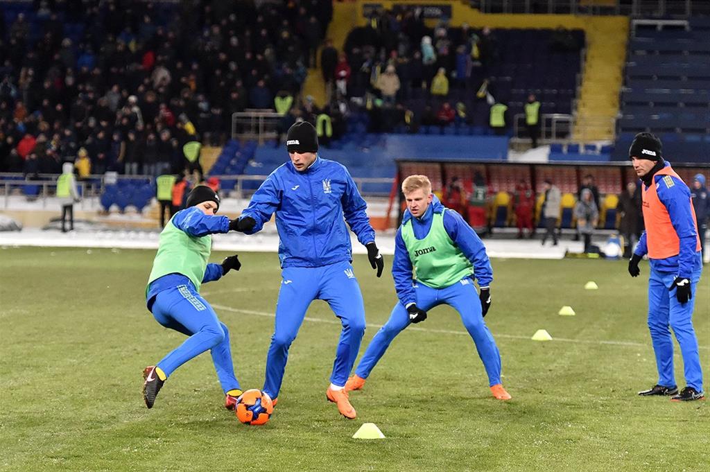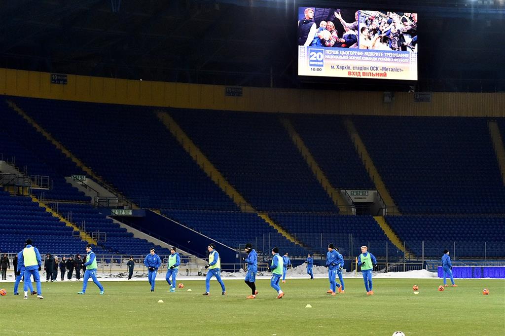 На следующий день после прилета основное внимание было приковано к вечерней открытой тренировке на ОСК Металлист, поле на котором специально усиленно готовилось именно под сборную Украины. При этом львиная доля внимания была сосредоточена на пресс-конференции Андрея Шевченко. Наставник сборной Украины первым делом поздравил защитника Ивана Ордеца с рождением дочери, после чего ответил на вопросы журналистов.