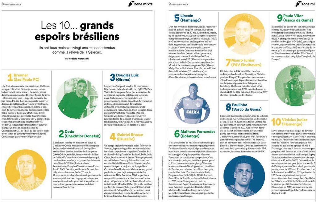 Журналист France Football Роберто Нотариани составил список из десяти самых больших надежд бразильского футбола.
