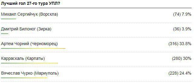 Україна 17 квітня 2018, 20:30 Гол Артема Чорния — лучший в 27-м туре УПЛ Пользователи Football.ua выбрали лучший гол 27-го тура чемпионата Украины. Артем Чорний, фото: Скриншот 17 квітня 2018, 20:30 За гол Артема Чорния в ворота Зирки (1:2) проголосовало 33,8% пользователей Football.ua. Таким образом, 28-летний хавбек — автор лучшего гола в 27-м туре УПЛ. Результаты голосования: Видео гола: Желаете узнавать главные футбольные новости первыми? Подписывайтесь на наш канал в Telegram! Следить за нашим сайтом вы также можете в Viber и Twitter. Олександр Caвeльєв Football.ua всі статті автора Люди Артем Чорний Команди Чорноморець Facebook
