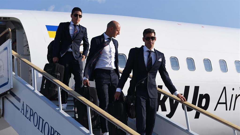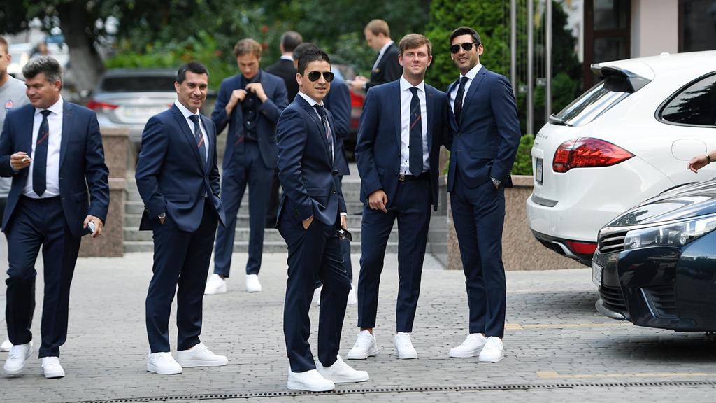 Игроки, тренерский штаб и персонал Шахтера, одетые в классические костюмы и белые кроссовки, прибыли в Одессу накануне матча за Суперкубок Украины против Динамо.