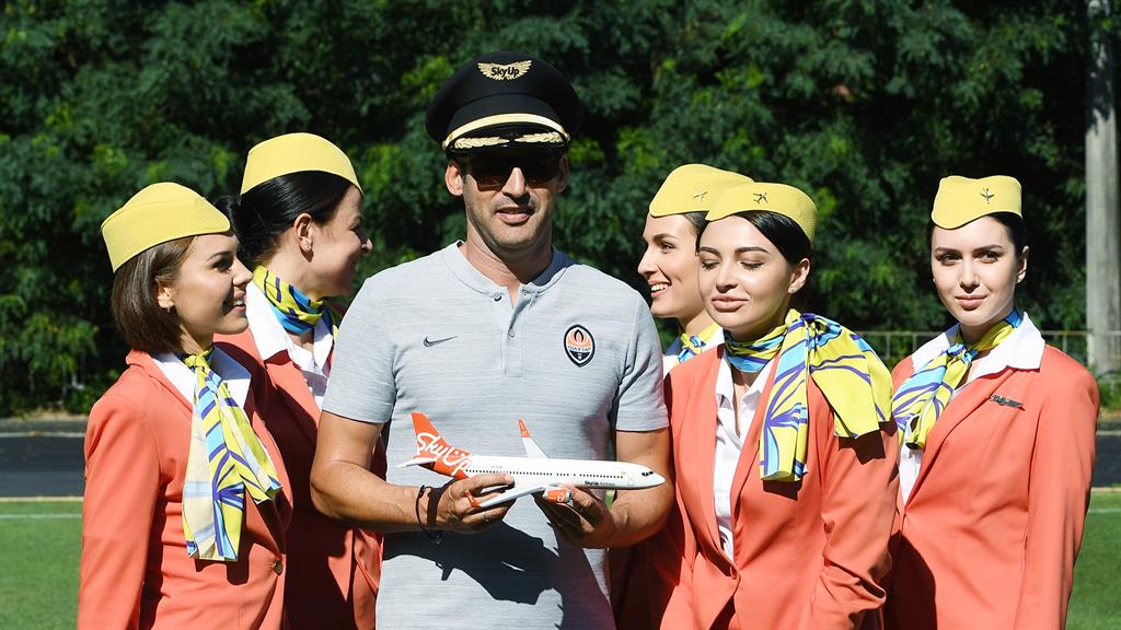 Также отдельное фото "горняки" сделали с новым официальным партнером клуба – авиакомпанией SkyUp. Мужское общество футболистов и тренеров дополнили стюардессы, а наставник Шахтера Паулу Фонсека примерил фуражку капитана воздушного судна.