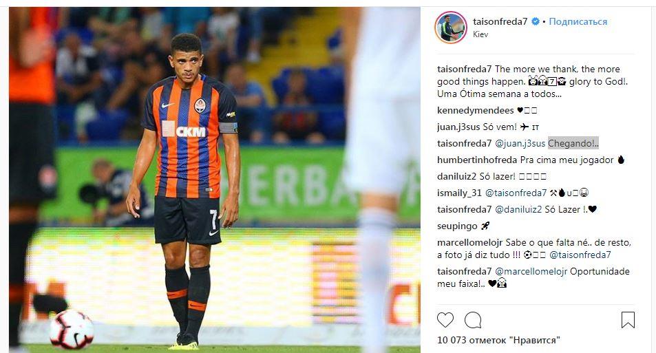 В комментариях к посту защитник Ромы Жуан Жезус написал: "Просто прилетай в Италию!".