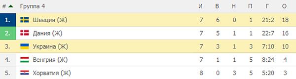 Таким образом, за один тур до конца отбора сборная Украины занимает третье место в группе 4, отставая от второго места, которое дает шансы на проход дальше, на шесть очков.