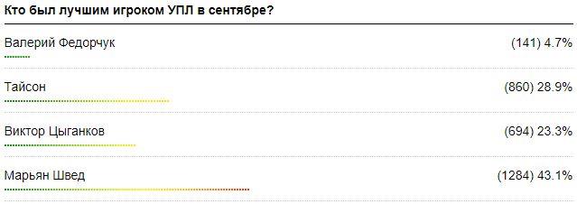 По результатам голосования зрителей на официальном сайт УПЛ победителем стал нападающий Карпат.