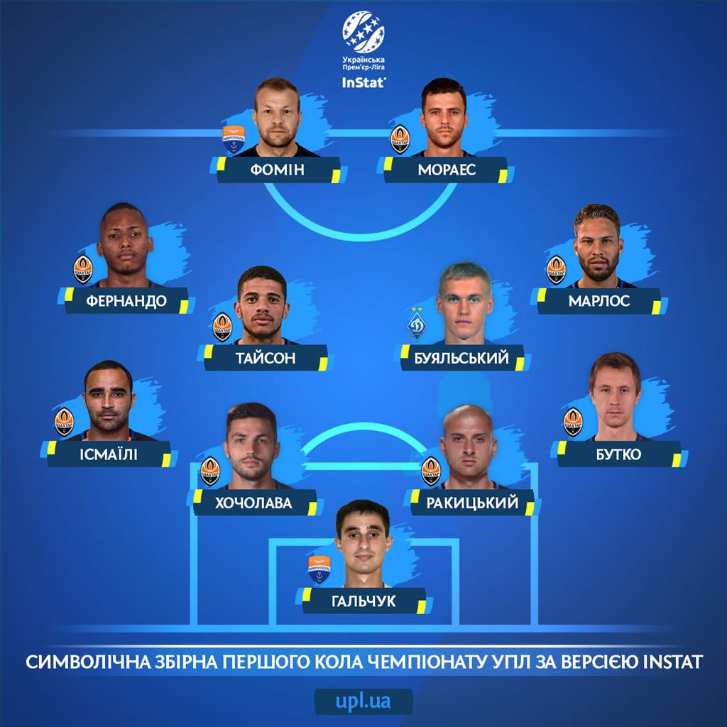 Используя данные системы InStat, Украинская Премьер-лига составила символическую сборную первого круга чемпионата Украины.