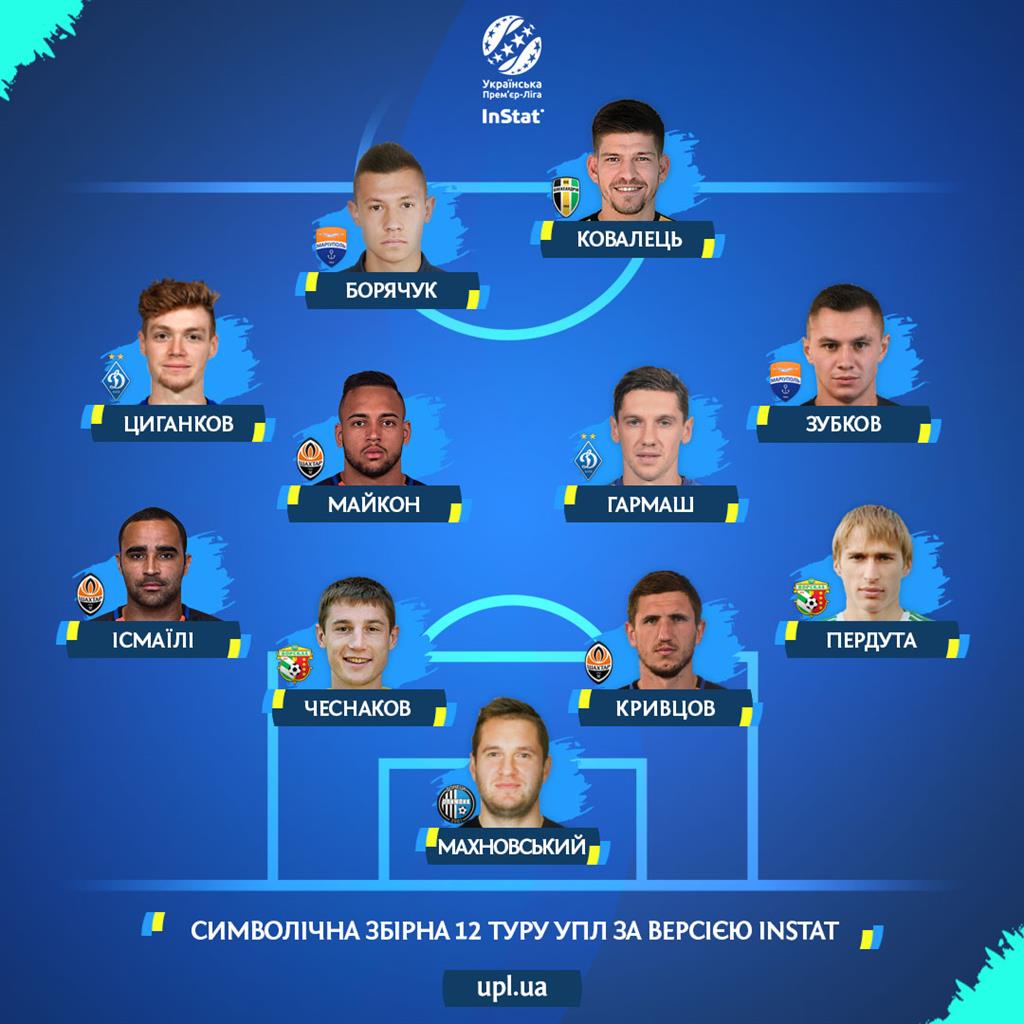 Официальный сайт УПЛ представил символическую сборную 12-го тура, составленную на основе данных InStat.