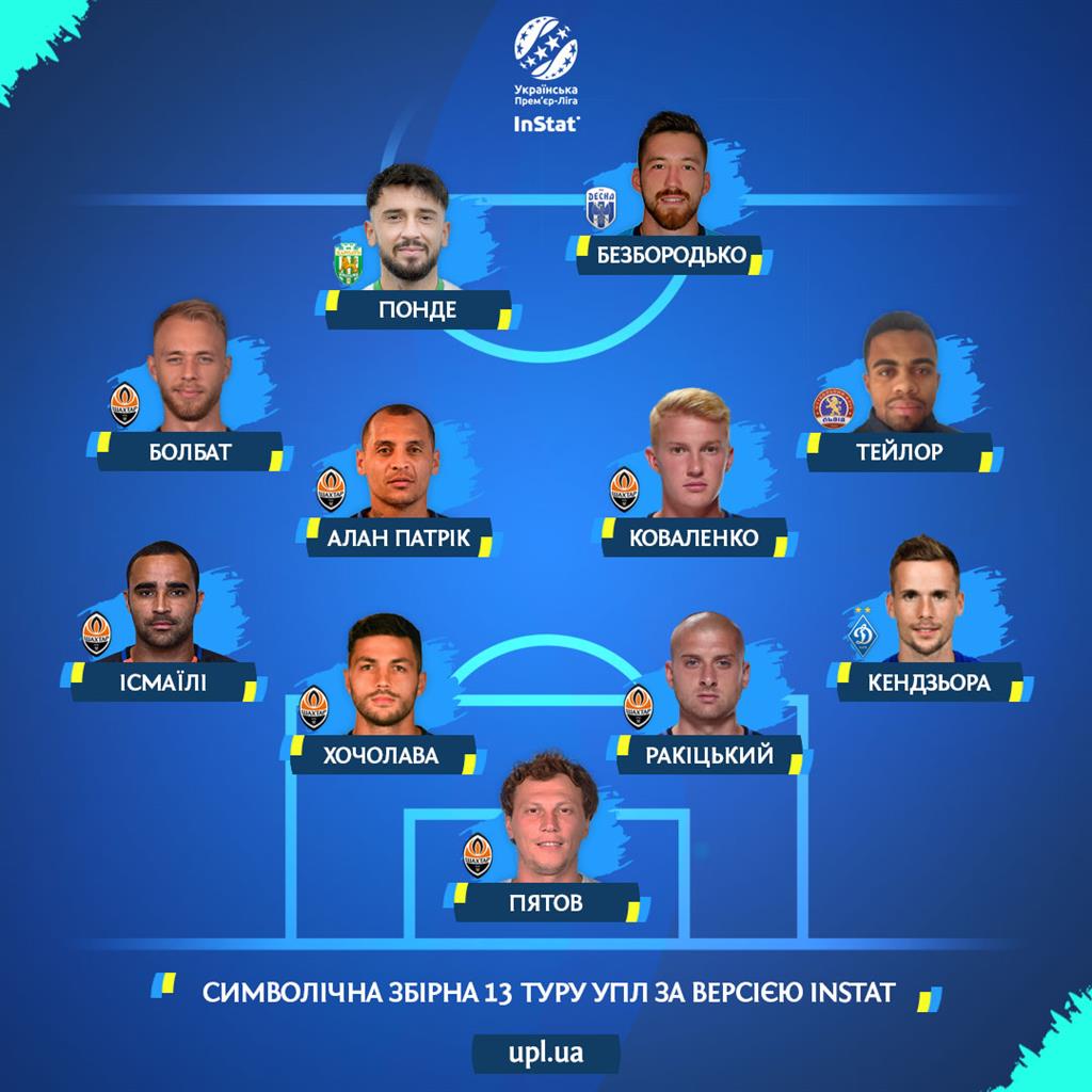 По версии InStat лучшим стал хавбек донецкого Шахтера Алан Патрик. В символическую сборную из состава "горняков" попали еще 6 футболистов. По одному представителю делегировали Динамо, Львов, Карпаты и Десна.