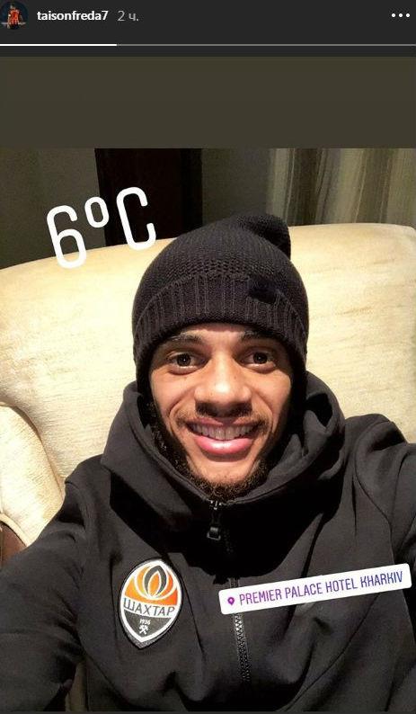 Тайсон присоединился к Шахтеру в Харькове: бразильский футболист выложил фотографию в Instagram, указав геолокацию гостиницы Premier Palace Hotel Kharkiv.
