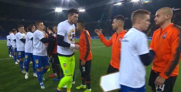 На традиционном рукопожатии перед матчем, голкипер Динамо Денис Бойко остался единственным игроком киевлян, который не пожал руку форварду Шахтера Жуниору Мораесу.