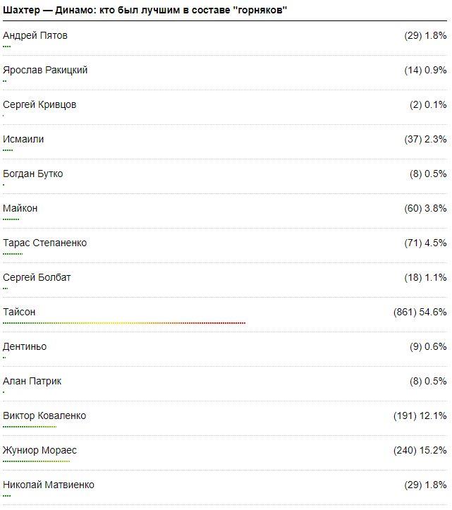 Україна 04 листопада 2018, 12:45 Тайсон — лучший в составе Шахтера в матче против Динамо Полузащитник сборной Бразилии получил признание от пользователей Football.ua. Тайсон, фото ФК Шахтер 04 листопада 2018, 12:45 Шахтер в большинстве вырвал победу у Динамо на последних секундах матча 14-го тура чемпионата Украины. Тайсон начал матч на скамейке запасных, но вышел после перерыва и помог своей команде победить. Больше половины респондентов, принявших участие в голосовании за лучшего игрока "горняков" в матче против Динамо, отдали свои голоса именно бразильцу. На Football.ua доступно видео голов и обзор матча Шахтер — Динамо (2:1). Желаете узнавать главные футбольные новости первыми? Подписывайтесь на наш канал в Telegram! Следить за нашим сайтом вы также можете в Facebook, Instagram и Twitter. Василь Войтюк всі статті автора Люди Тайсон Команди Шахтар Facebook