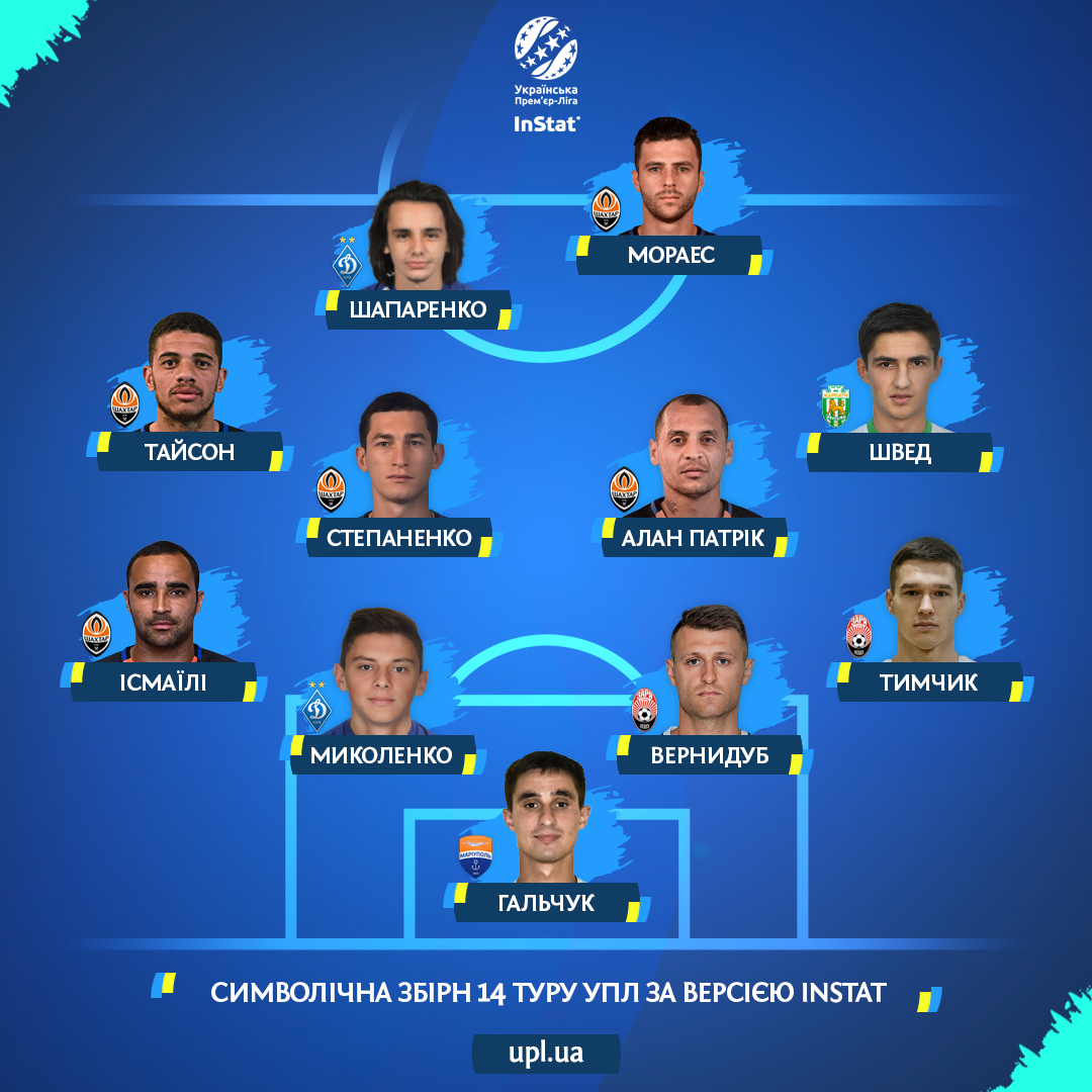 Сборная по версии InStat: Гальчук — Тымчик, Вернидуб, Миколенко, Исмаили — Швед, Алан Патрик, Степаненко, Тайсон, Шапаренко — Мораес.