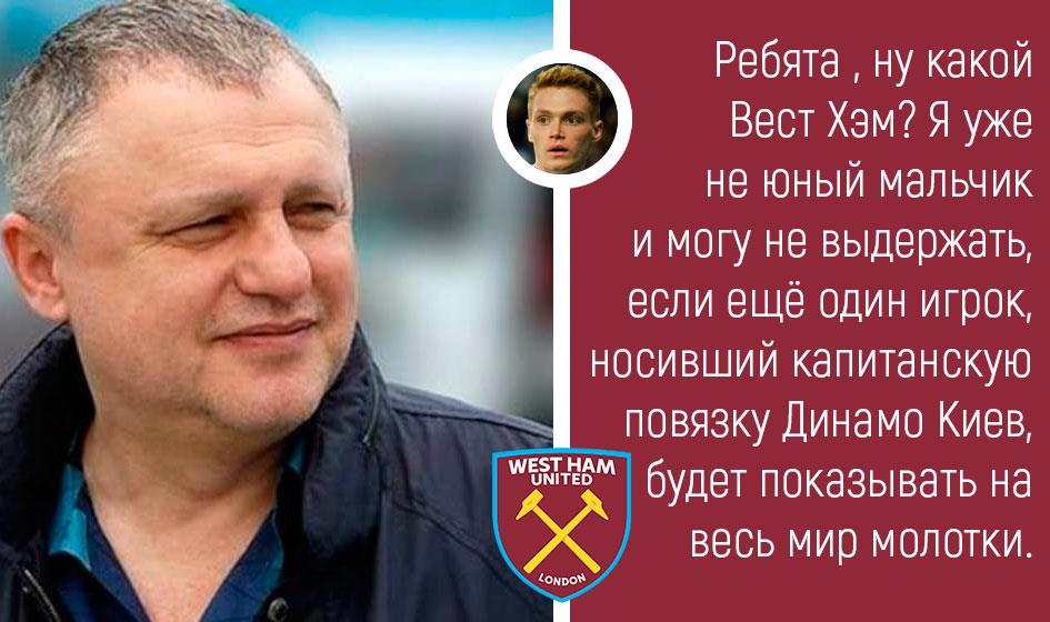 "Если придет нормальное предложение, и Андрея все устроит, я его отпущу. С Эвертоном и Сток Сити у меня была позиция — не отпускать Ярмоленко. Я должен был показать болельщикам, что Динамо — это Динамо. Мы играем в Лиге чемпионов, а Сток Сити борется за выживание".