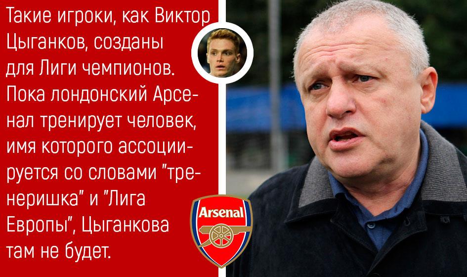 "Цыганков — это атакующая машина, а уйдет он в Ман Сити и что? Будет там левым защитником? Ну уж нет".