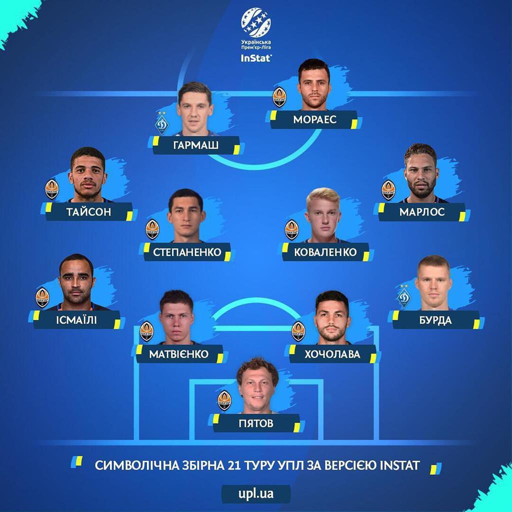 Україна 11 березня 2019, 16:54 В символическую сборную 21 тура вошли девять игроков Шахтера и два динамовца УПЛ представила символическую сборную 21 тура согласно данным InStat. фото: ФК Шахтер 11 березня 2019, 16:54 Пресс-служба украинской Премьер-лиги назвала символическую сборную по итогам 21 тура. В команду по итогам недели согласно данным InStat вошло сразу девять игроков Шахтера и два футболиста Динамо. Отметим, что сразу три матча в туре завершились ничьей (0:0). Читайте также о 21-м туре украинской Премьер-лиги на Football.ua. Желаете узнавать главные футбольные новости первыми? Подписывайтесь на наш канал в Telegram! Следить за нашим сайтом вы также можете в Facebook, Instagram и Twitter. Oleksii всі статті автора Команди Динамо Київ Шахтар Джерела УПЛ Facebook