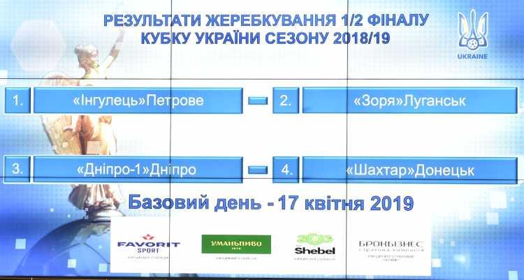 Матчи 1/2 финала Кубка Украины Ингулец — Заря и СК Днепр-1 — Шахтер пройдут 17 апреля.