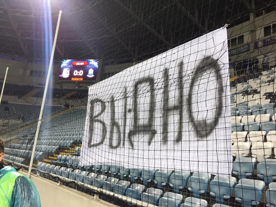 Перед матчем фанаты одесситов вывесили баннер с надписью "Вы дно".