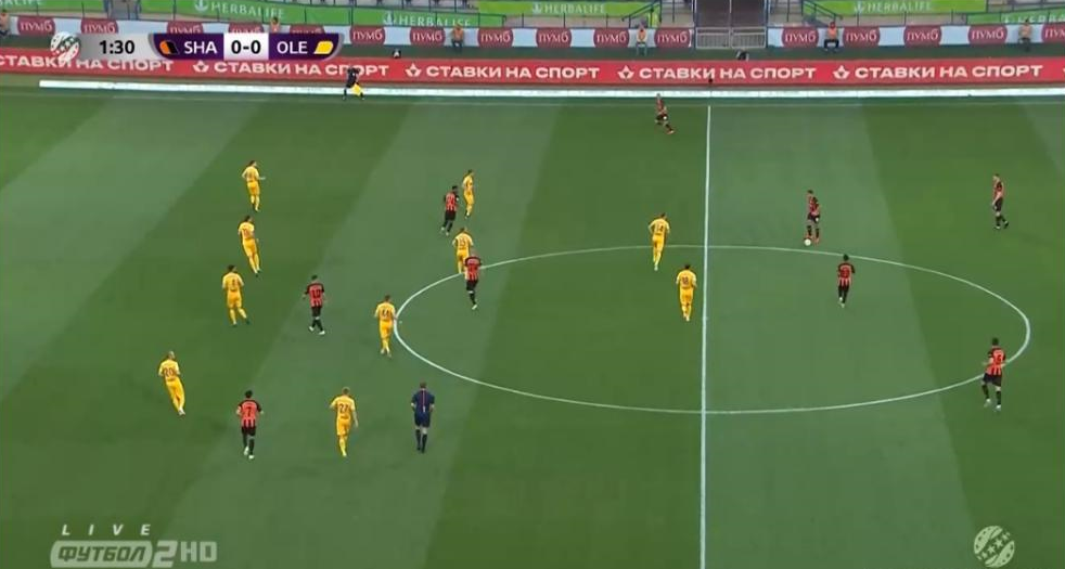 2. В прошлом очном матче Владимир Шаран подготовил команде Паулу Фонсеки высокий прессинг, который "горнякам" не всегда удавалась проходить. Правда, когда Шахтер преодолевал давление Александрии сразу же возникали опасные моменты. Так и родился единственный забитый мяч в том матче. В харьковской игре Александрия отошла от это стратегии, предпочитая средний или же низкий блок. Гости позволяли Шахтеру подолгу контролировать мяч, однако, когда "горняки" доходили до финальной трети возникали серьезные проблемы.