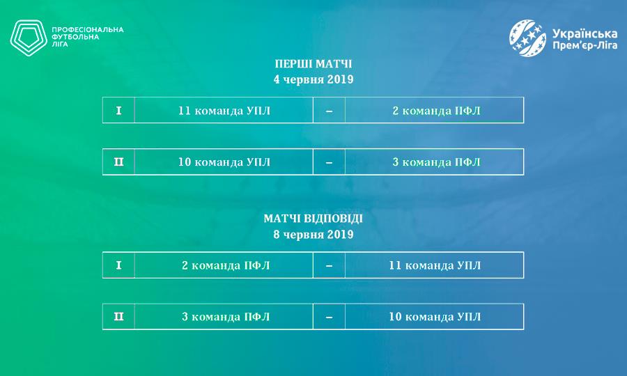 Согласно календарю матчи плей-офф состоятся 4 и 8 июня. Команды из УПЛ первые матчи проведут на своем поле.