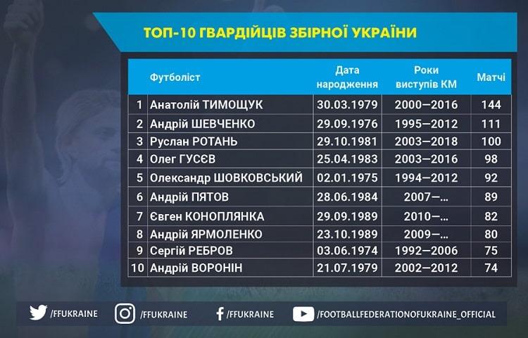 Эти поединки стали 88-м и 89-м во вратарском свитере сборной Украины для голкипера Шахтера Андрея Пятова. Теперь он отстает от своего нынешнего тренера Александра Шовковского всего на три матча.