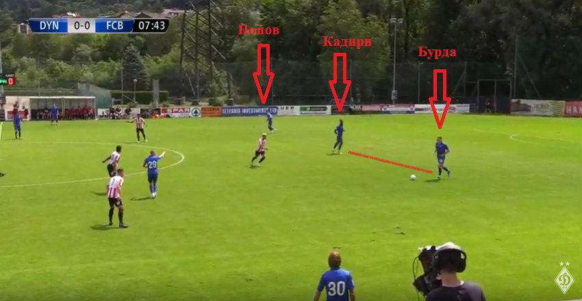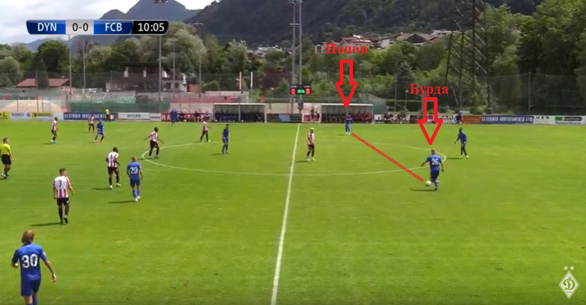 Таким образом, при позиционных атаках Динамо Буяльский опускался ближе к защитникам и в отчетном матче. Такого раньше в схеме 4-1-4-1 от центральных полузащитников Динамо мы не видели. К слову, когда нужно было включить высокий прессинг, то Буяльский находился на нужной позиции, образовывая пятерку футболистов, которые прессингуют.
