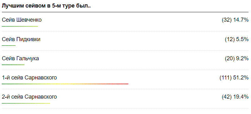 Вратарь ФК Львов Богдан Сарнавский стал абсолютным победителем в номинации за Лучший сейв пятого тура УПЛ. Кипер "сине-золотых" занял первое и второе место в голосовании.