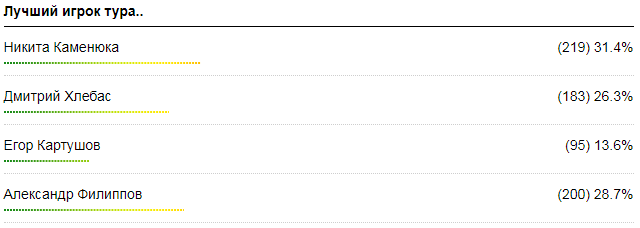 Капитан луганчан победил в голосовании среди посетителей сайта, набрав 31,4% голосов. В борьбе за это звание 34-летний игрок обошел форварда Десны Александра Филиппова.