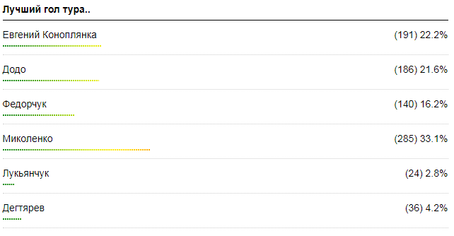 Гол Миколенко набрал в голосовании 33,1% голосов: