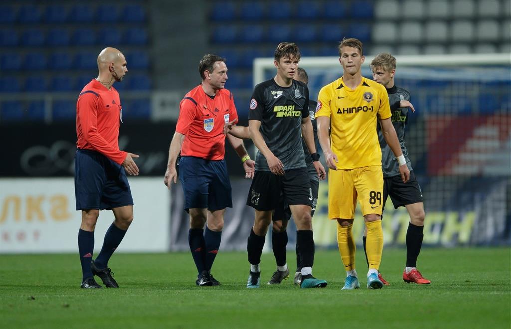 На 68-й минуте был удален Александр Сафронов (Днепр-1) (повторное предупреждение).