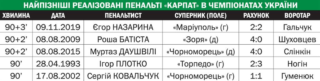 Гол футболиста с пенальти стал самым поздним в истории Карпат в чемпионатах Украины. Об этом сообщает пресс-служба львовян.