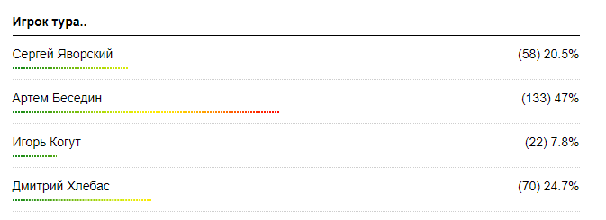В борьбе за звание игрока тура по версии читателей Football.ua схлестнулись Беседин, Яворский, Хлебас и Когут.