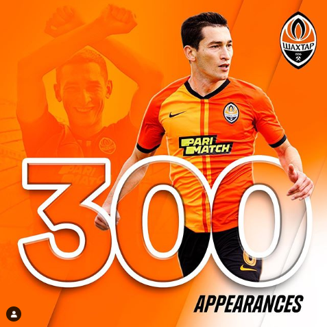Украинский хавбек провел в футболке донецкого клуба 300 матчей во всех турнирах, с чем его поздравила пресс-служба Шахтера.