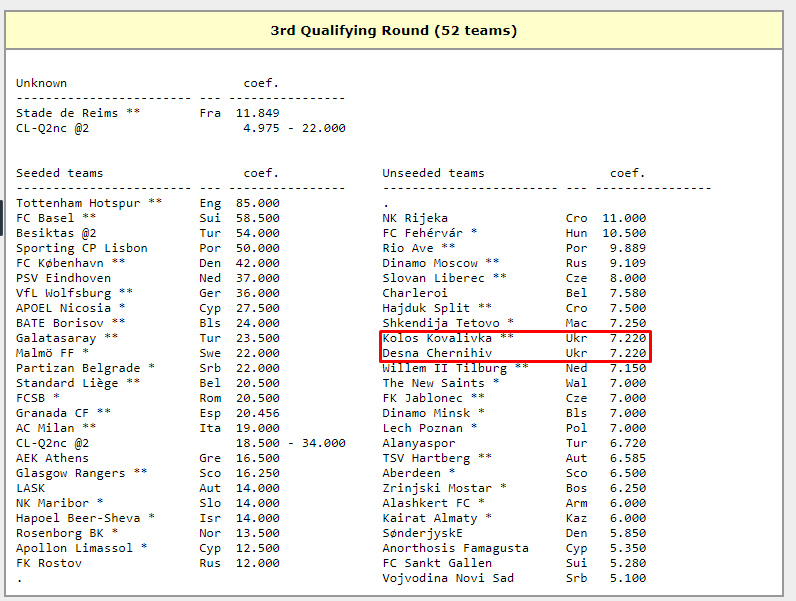 В третьем квалификационном раунде киевляне будут сеяными и могут попасть на АЗ или ПАОК, однако благодаря высокому рейтингу не встретятся с Бенфикой и Гентом.