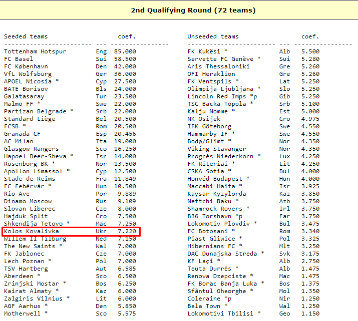 Благодаря такому показателю ковалевцы сразу же могут выдохнуть — команды калибра Тоттенхэма и Милана им не достанутся. Потенциальными соперниками Колоса остаются представители скандинавских стран, Балкан, Израиля, Казахстана, и Беларуси.