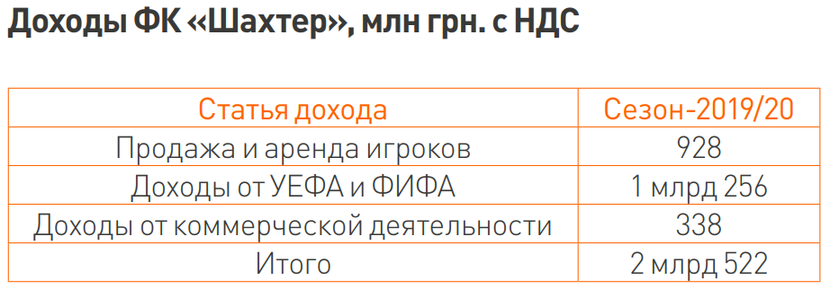 Согласно отчету на официальном сайте клуба, доходы Шахтера от продажи и аренды игроков составили 928 млн гривен. Выплаты от УЕФА и ФИФА принесли "горнякам" 1 миллиард 256 миллионов гривен, а еще 338 млн гривен клуб заработал на коммерческой деятельности.