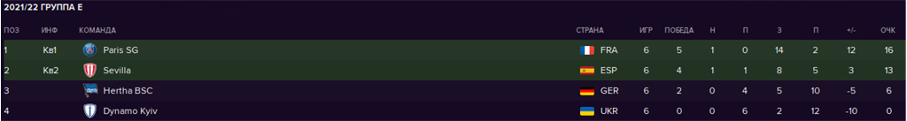 Первое место в чемпионате позволило Динамо напрямую попасть в групповой этап Лиги чемпионов. Группа попалась не сказать, что сверхсильная, но противопоставить что-то ПСЖ и Севильи не представляется возможным, да и борьба с Гертой за третью строчку была провалено. 0 очков и -10 в графе забитых и пропущенных.