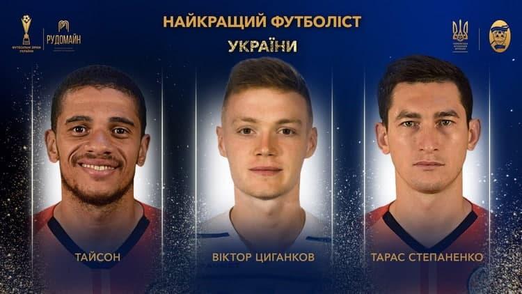 В тройку кандидатов на почетный титул вошли два игрока Шахтера и один представительно Динамо Киев: Тайсон, Тарас Степаненко и Виктор Цыганков.