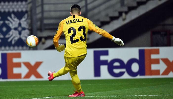 Переходим к самому обсуждаемому момента – удалению Николы Василя. Боснийский голкипер выбегает за пределы штрафной и старается не дать нападающему первому быть на мяче, прыгает головой в мяч, играет в него и по инерции бедром влетает в ноги форварда, нанося ему страшную травму.
